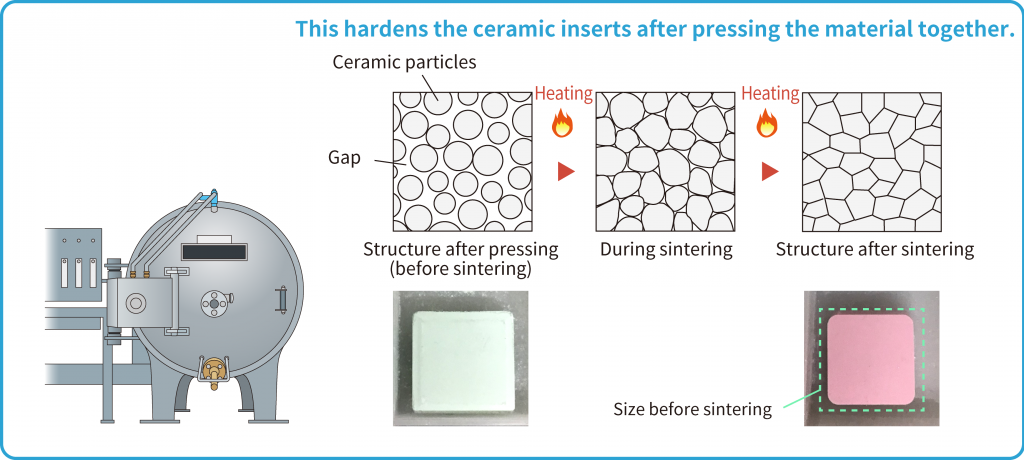 The ceramic particles bond and densify, eliminating internal pores.