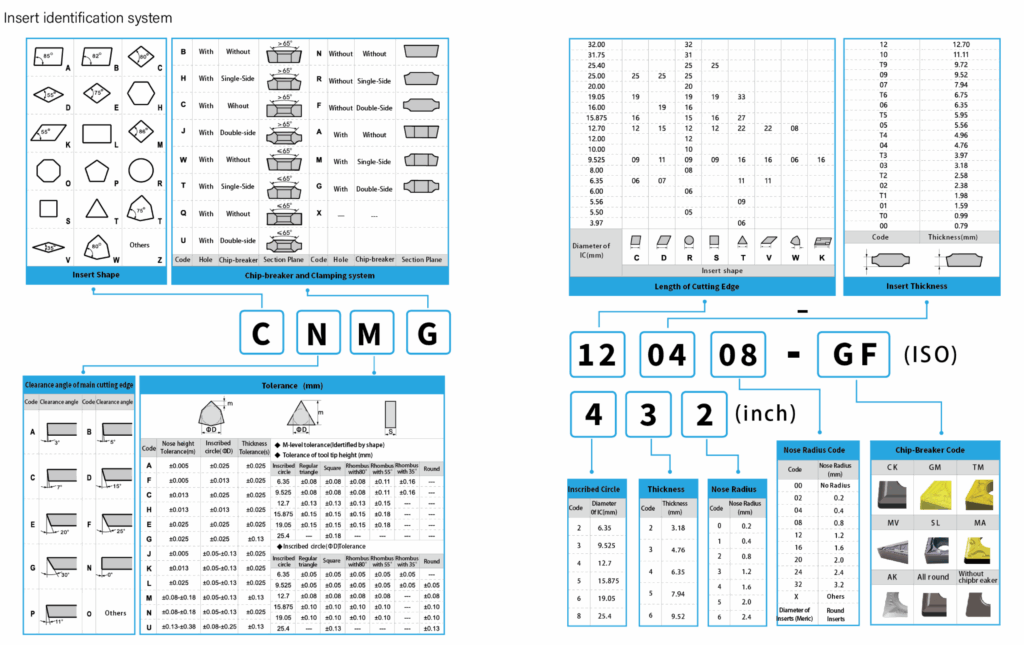 Interpretation of markings, codes, and symbols found on carbide inserts.