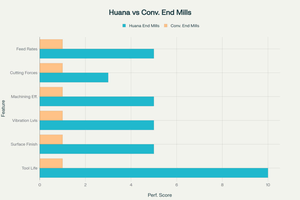 The combination of variable-helix geometry and DLC coating technology creates an impressive synergistic effect. It can eventually address numerous challenges. Let’s do a performance analysis with traditional end mills and explore it in detail.