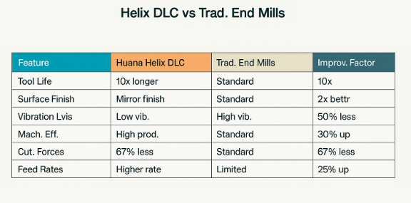 Feature | Huana Variable-Helix DLC End Mills | Traditional End Mills |